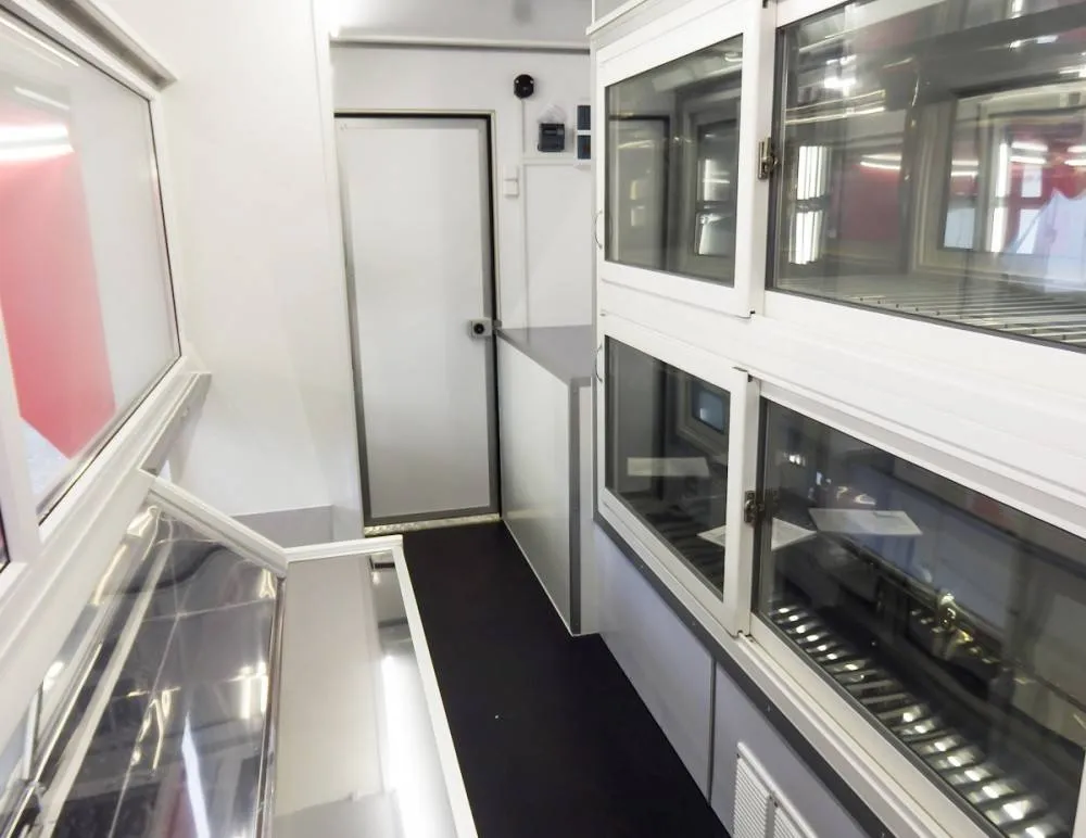 Внутренние размеры фургона 4700х2080х2030 мм или могут быть увеличены. Передвижной магазин представляет собой шасси с автолавкой, которая включает в себя удобный холодильный шкаф с витриной и гардеробный шкаф с дверью. В ДЖАК 80 предусмотрено автономное водоснабжение.